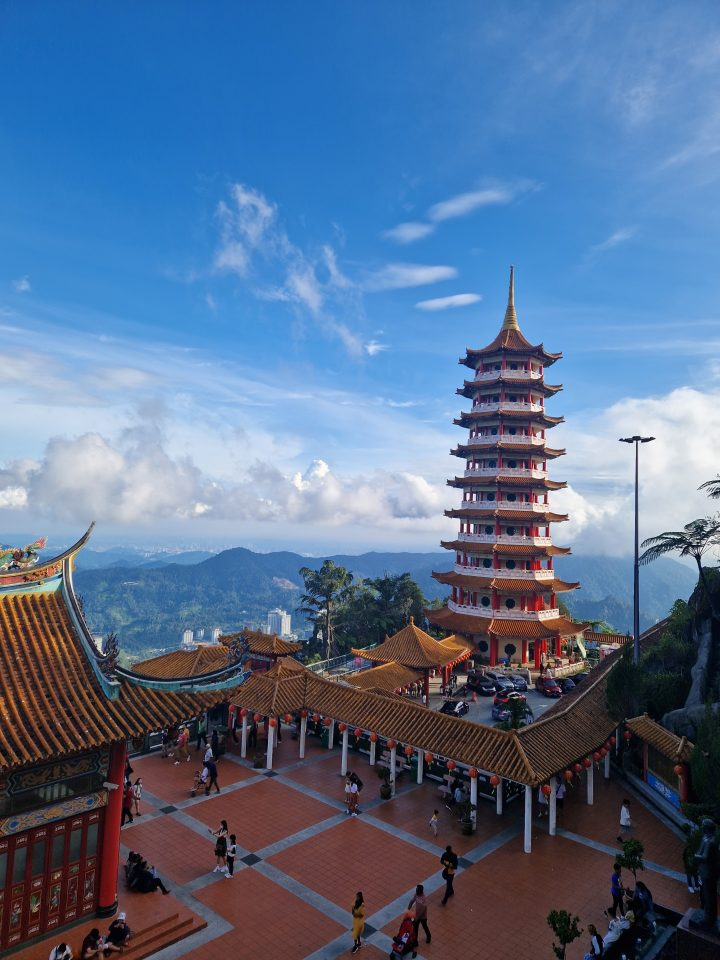 Znajduje się tu system gondoli więc nie trzeba wdrapywać się samochodem na sam szczyt. Na jednym z przystanków, co zdecydowanie polecam, znajduje się świątynia chińska. Buddyjska świątynia Chin Swee Caves znajduje się na wysokości 1400 m.n.p.m. i przede wszystkim daje świetny panoramiczny widok na lasy i pobliskie góry. Wielu ludzi przyjeżdża tam by się modlić, jest to dobra okazja żeby zaobserwować lokalne zwyczaje modlitewne, lub samemu spróbować rzucić kostkami by sprawdzić jakie jest prawdopodobieństwo realizacji rzeczy o której myślimy, jak było w moim przypadku 🙂
